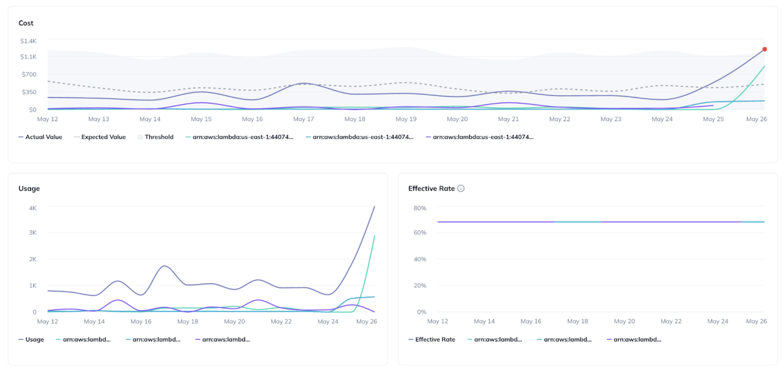 Usage and Rate Breakdowns help you quickly determine whether an anomaly was driven by a change in usage volume or in the effective cost per usage unit. A rate change might mean your price increased because a discount agreement expired or your pricing terms changed. This distinction matters because the root cause determines the right response. Without it, you risk fixing the wrong issue or missing the real source of unexpected costs.