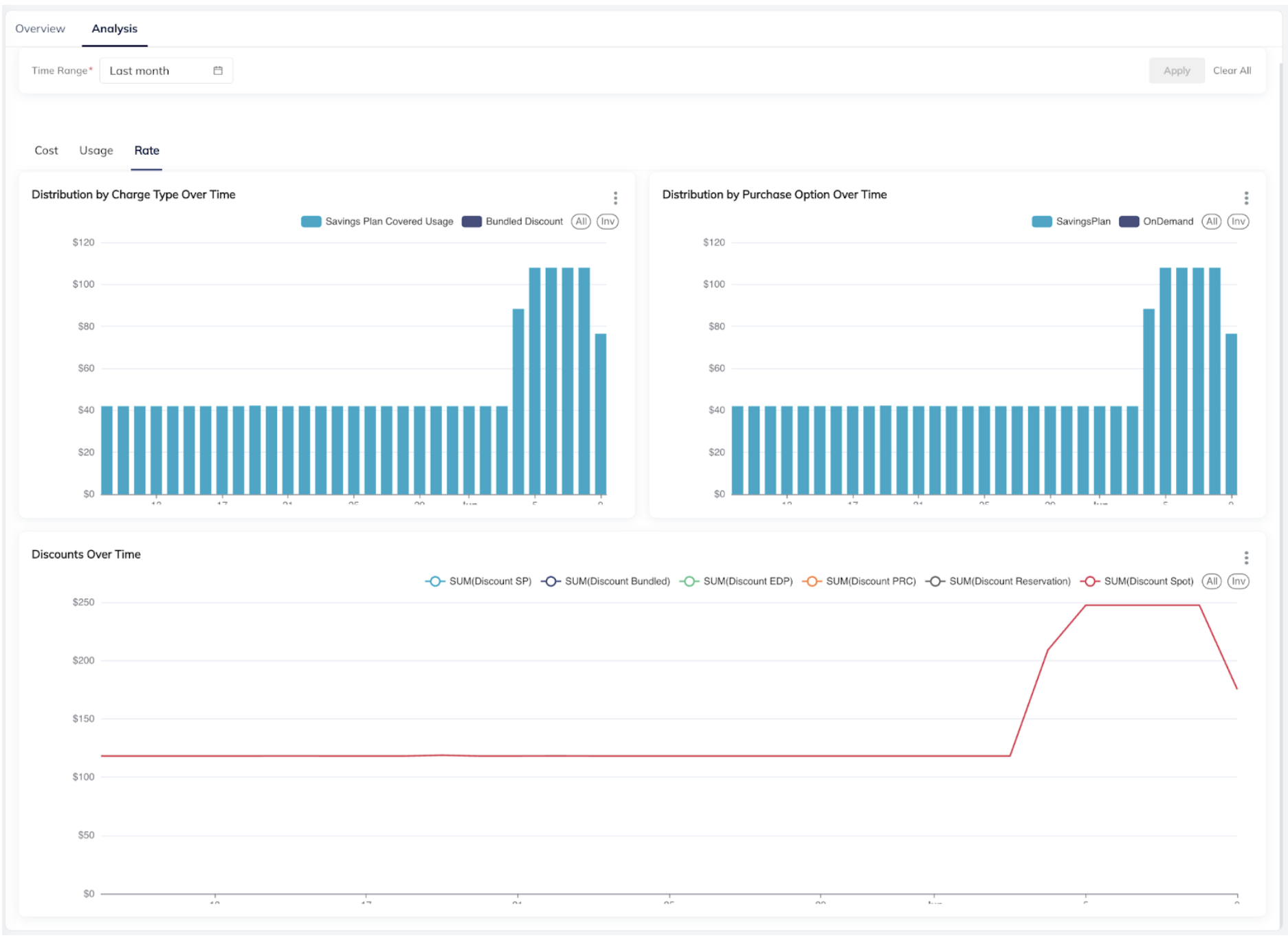 For example, here we can clearly see the anomaly was caused by a change in usage, while the rate remained stable: